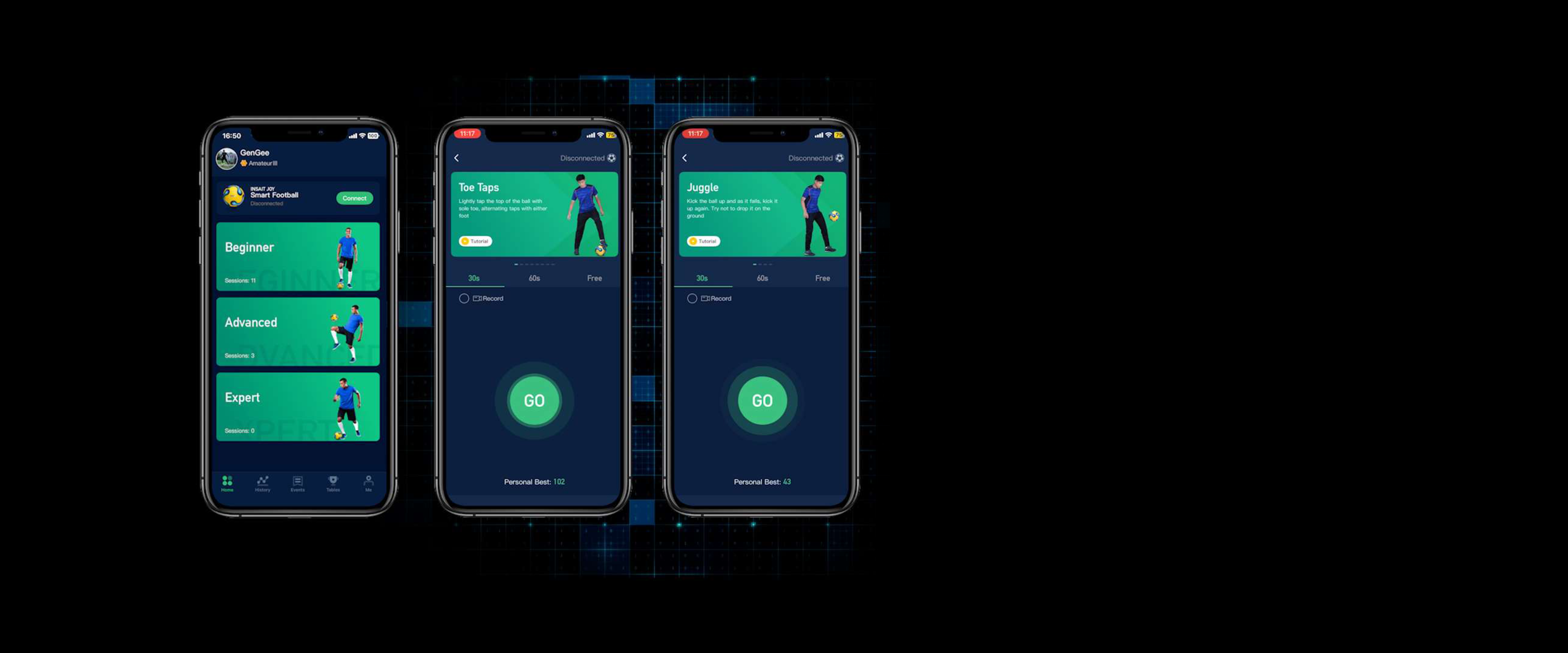 Select a drill and start your session. Enable V-log mode to allow your friends or family to record your fancy skills!