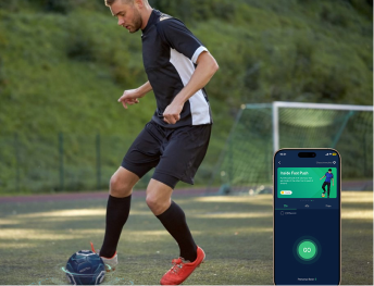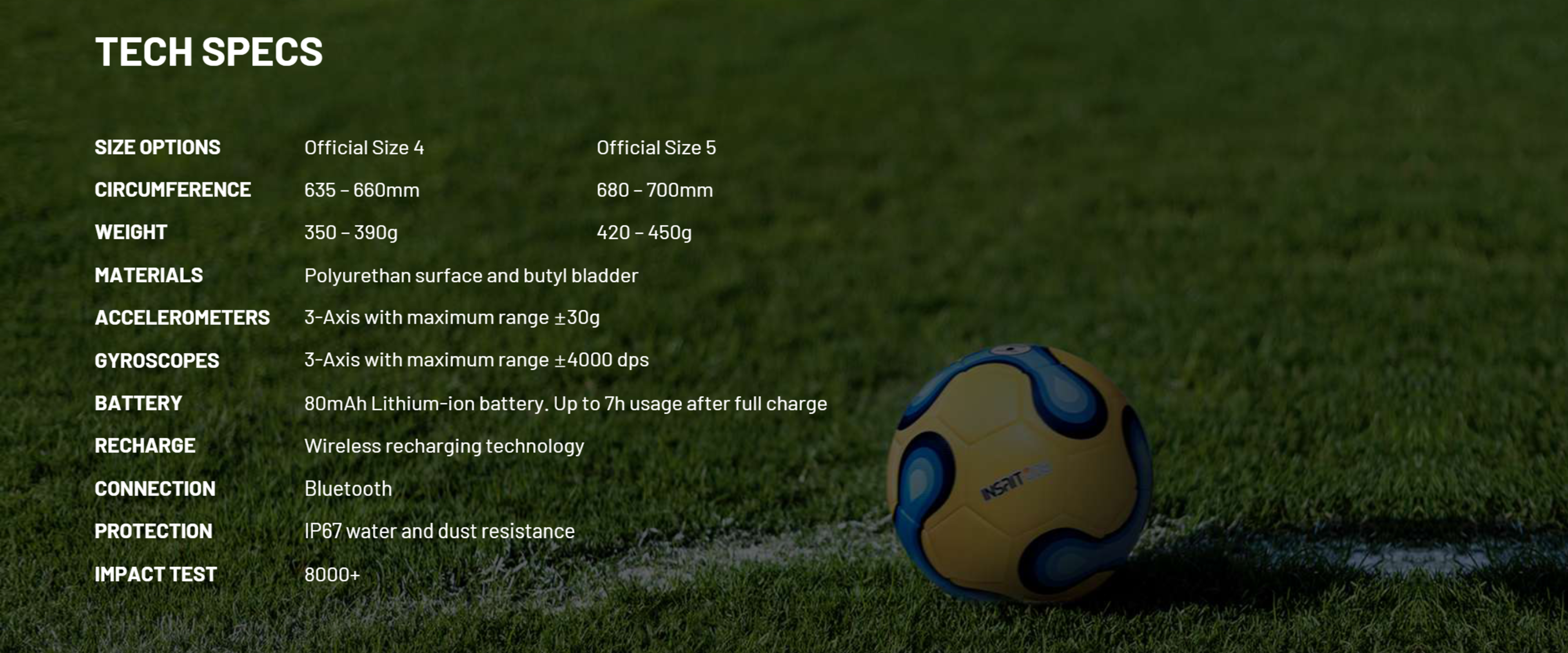 - A sensor-embedded soccer with built-in drills, connected to phone via the app.